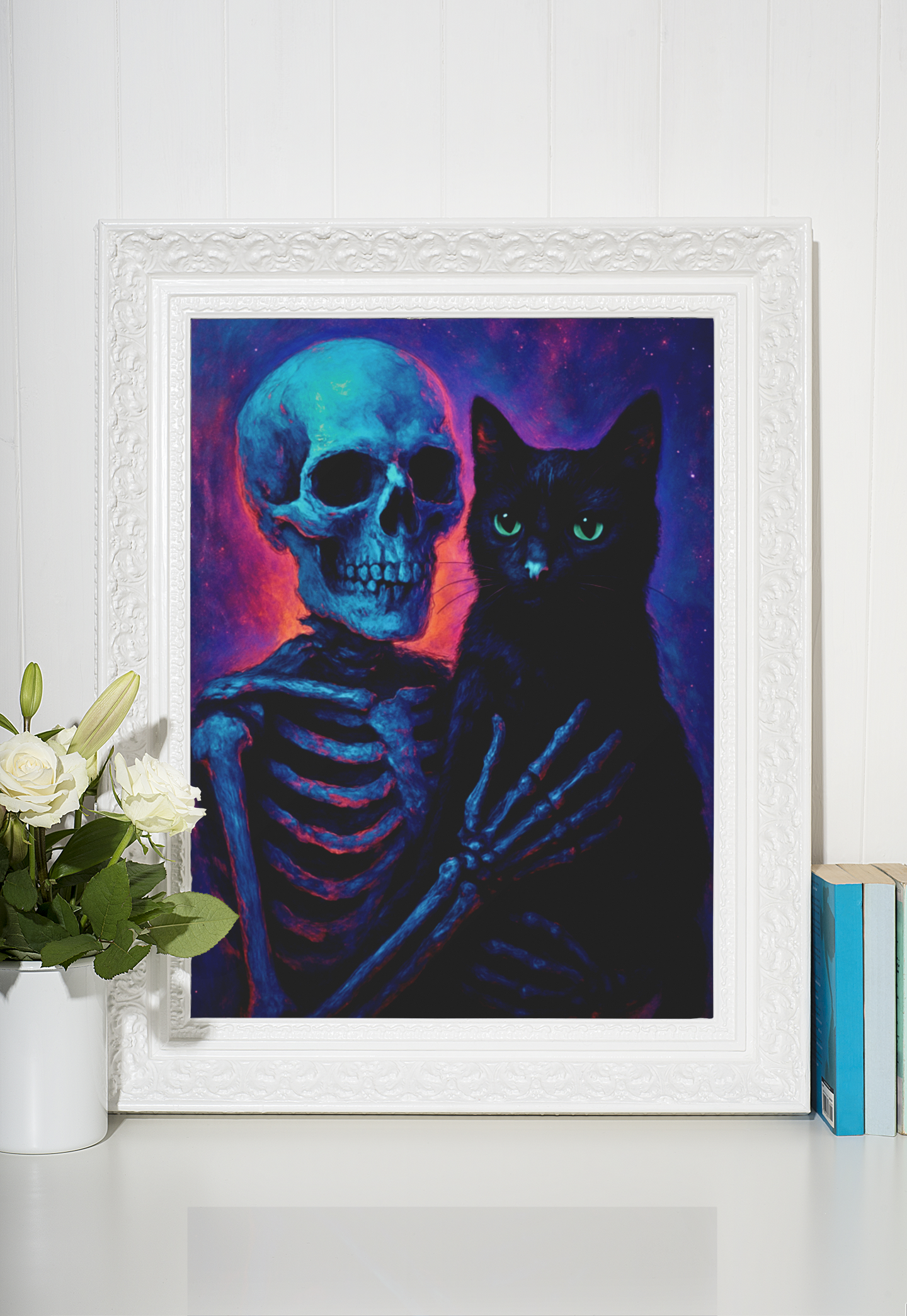 Printed with exceptional quality, Cosmic Embrace is more than wall art—it’s a portal into the House of Sebastian universe. Pair it with the earlier pieces in the series to build a hauntingly elegant gallery wall that tells Sebastian’s story across space and shadow.